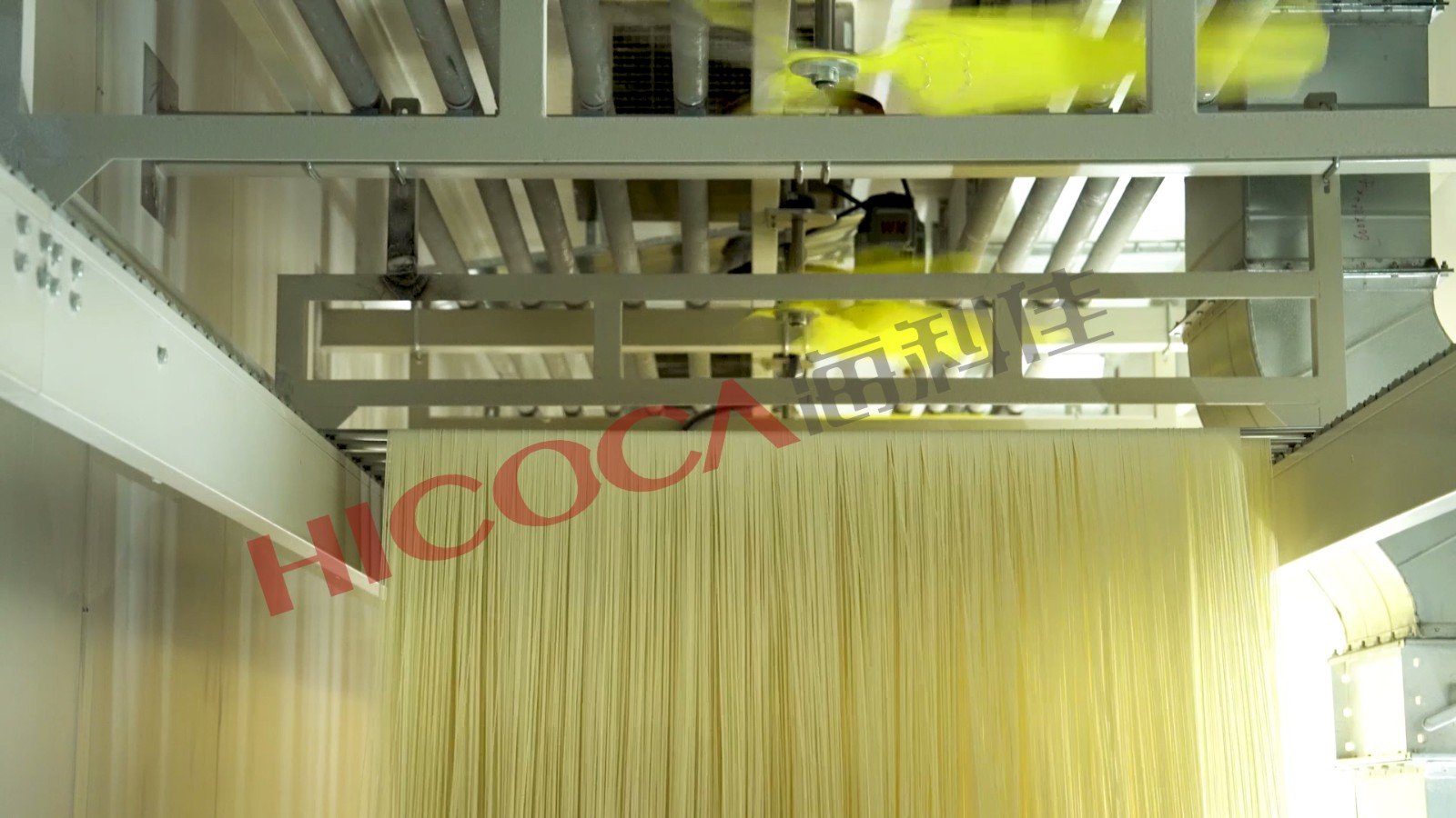 因此在生產(chǎn)過程中各區(qū)域的溫濕度控制不當(dāng),造成內(nèi)部水分向外擴(kuò)散小于表面水分蒸發(fā)的速度,外表已經(jīng)收縮結(jié)膜,內(nèi)部水分受熱,動能增加(體積增大),原先的脫水毛細(xì)管已經(jīng)收縮,當(dāng)水分受熱膨脹的脹力大于蛋白質(zhì)收縮力時(shí),這會造成掛面表面出現(xiàn)裂紋。隨著在烘房中的移動過程中,面條繼續(xù)脫水,面條也將持續(xù)收縮,當(dāng)面條干縮產(chǎn)生的應(yīng)力加上內(nèi)部水分外擴(kuò)散的動力大于面筋網(wǎng)絡(luò)結(jié)構(gòu)的結(jié)合力時(shí),造成掛面內(nèi)部撕裂。掛面整體的彎曲強(qiáng)度和抗拉強(qiáng)度急劇下降,造成大面積斷條,這就是酥條的機(jī)理。