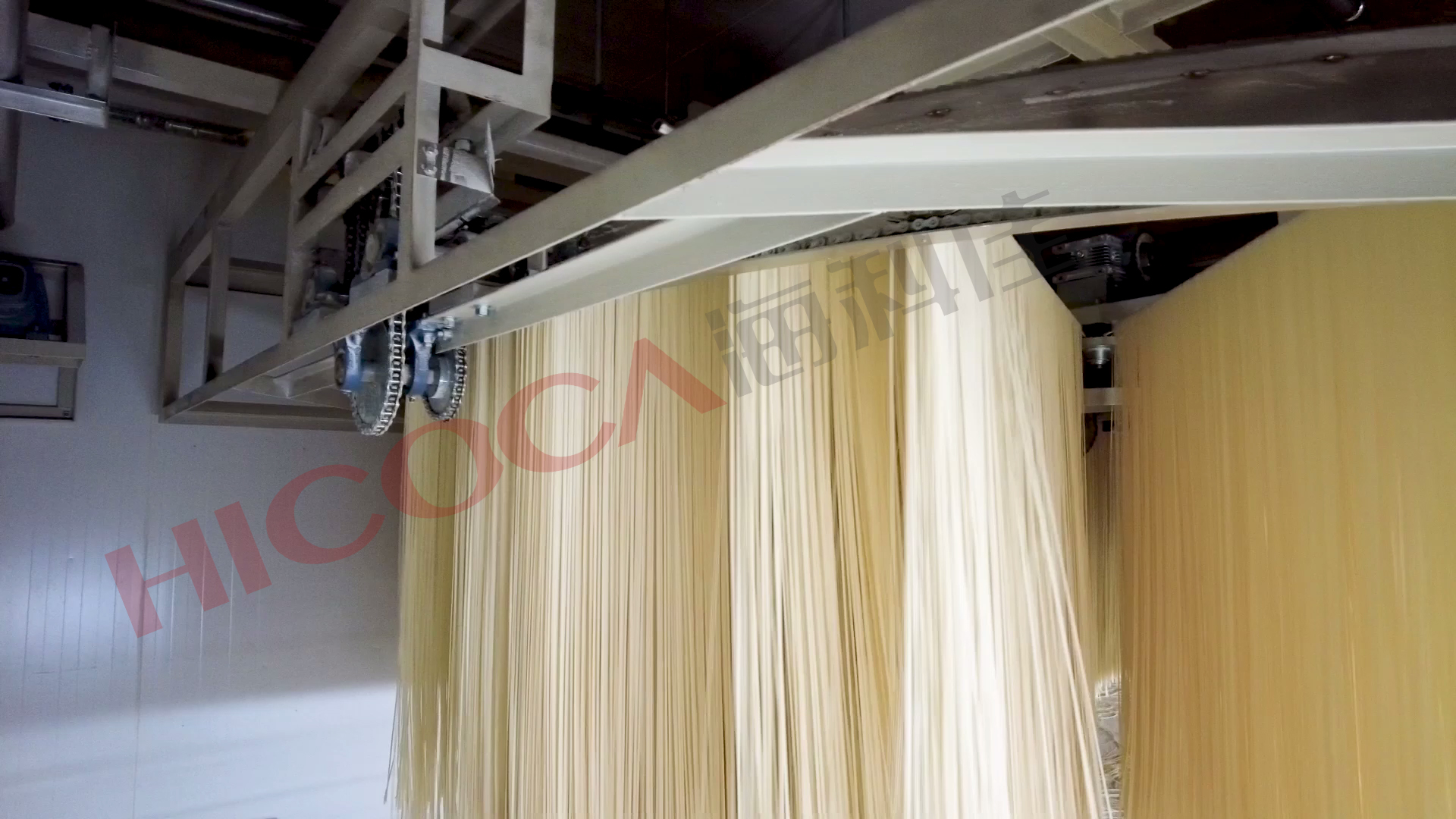 如果水分梯度過大,這種應(yīng)力就很大,就會造成掛面內(nèi)部出現(xiàn)拉斷。掛面薄時(shí),只是從上下方向斷裂;當(dāng)掛面厚時(shí)甚至?xí)笥曳较驍嗔眩纬蓲烀娴目v向裂紋。這種裂紋的最終的形成往往產(chǎn)生在降溫散熱區(qū)或者緩蘇區(qū),但它的形成過程卻是在升溫降潮區(qū)。