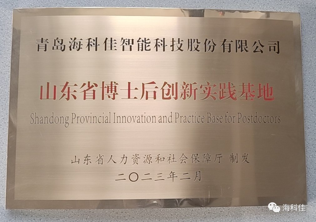 近期,山東省人力資源和社會保障廳公布“山東省博士后創新實踐基地”名單,認定青島海科佳智能科技股份有限公司等6家單位為山東省博士后創新實踐基地,并授予牌匾。
