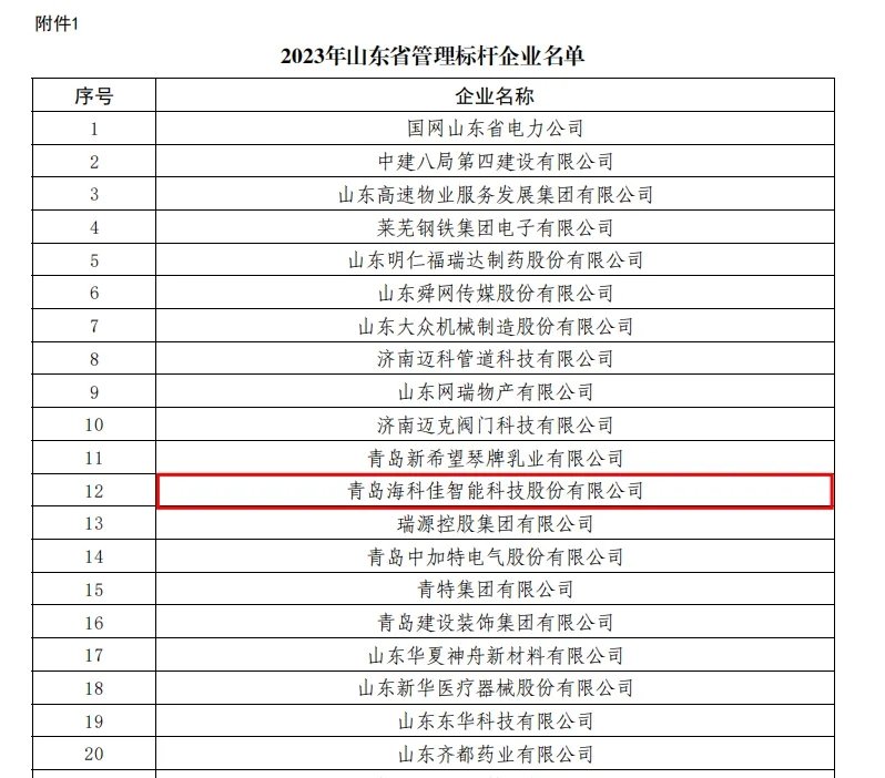 近日,山東省工業(yè)和信息化廳公示了山東省管理標(biāo)桿企業(yè)和山東省企業(yè)管理優(yōu)秀成果名單,青島海科佳憑借多年來形成的科學(xué)規(guī)范、系統(tǒng)完善、高效運(yùn)行的現(xiàn)代企業(yè)管理體系,成功獲評(píng)2023年山東省管理標(biāo)桿企業(yè)。