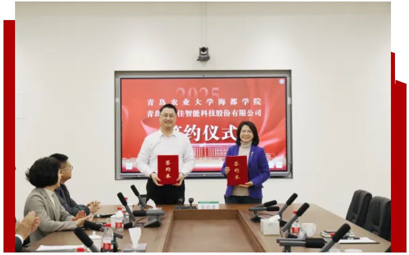 2025年12月7日,青島海科佳智能科技股份有限公司與青島農業大學海都學院在學院科教園成功舉行校企合作簽約儀式。海科佳公司成為首家入駐該科教園區共建產教融合基地的高新技術企業。